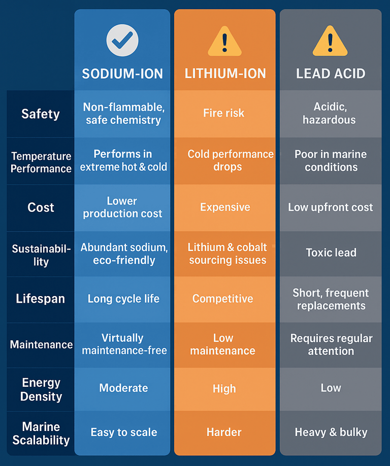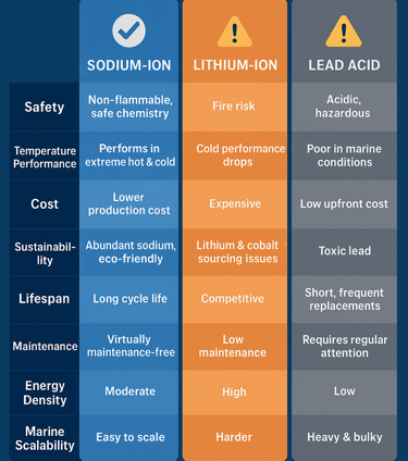 At Flagship Marine Batteries, we are proud to lead the shift toward sodium-ion battery technology - a safer, more sustainable, and cost-effective alternative to traditional lithium-based systems.